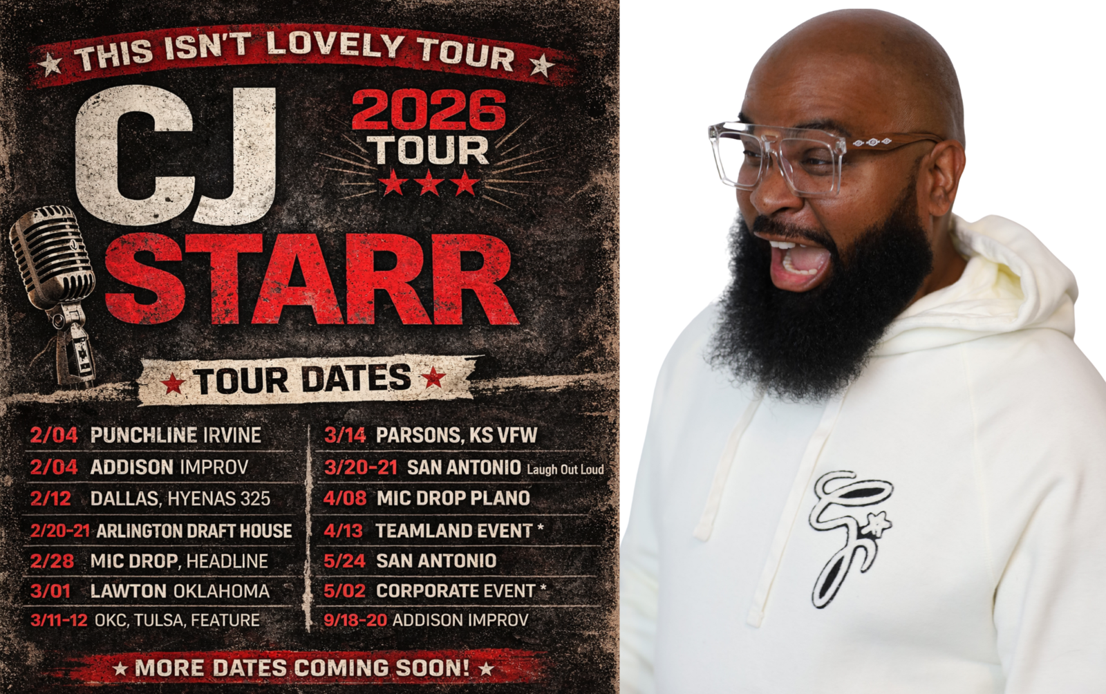 CJ Starr is constantly on the move. One night it’s a packed theater, the next it’s an unexpected drop-in somewhere you didn’t see coming.